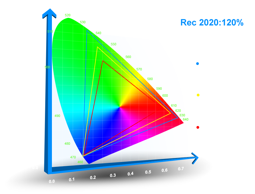 2、更大色域( 色域值達(dá)120% Rec.2020,165% DCI-P3,210% Rec.709)
